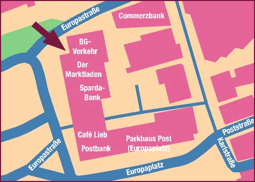 Parkhaus Post direkt am Europaplatz, befinden sich Kostenpflichtige Parkplätze. Die Praxis ist per Aufzug im 2 Stock erreichbar.